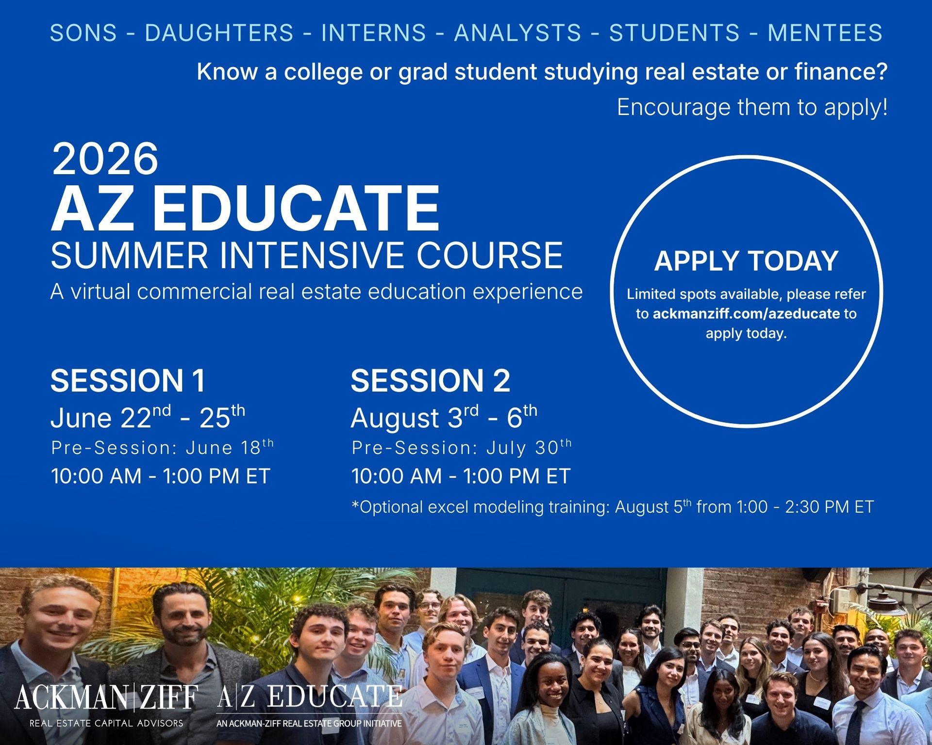 Wanted to share information on a great educational program our company hosts each summer called "AZ Educate". Thought it might be of interest for any analysts, interns, family members, or close friends who are college-aged or recent grads.